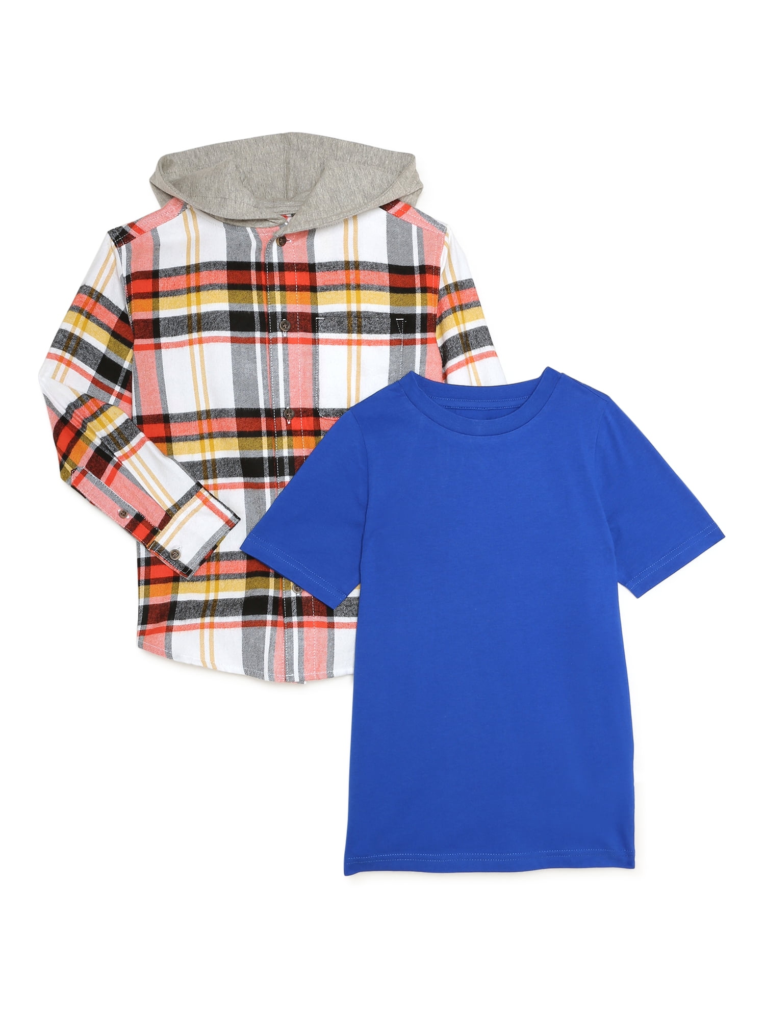 Wonder Nation Boys Hooded Flannel And T Shirt 2 Pack Sizes 4 18 Husky Walmart Com